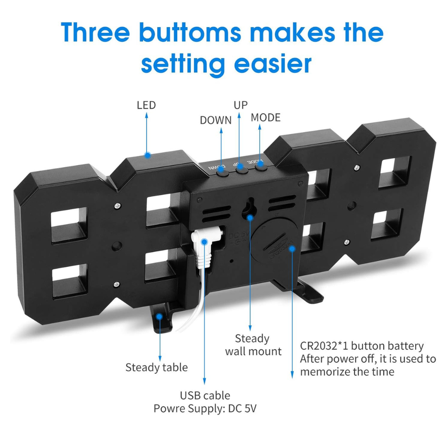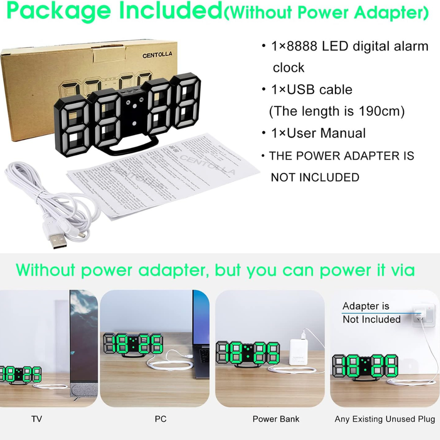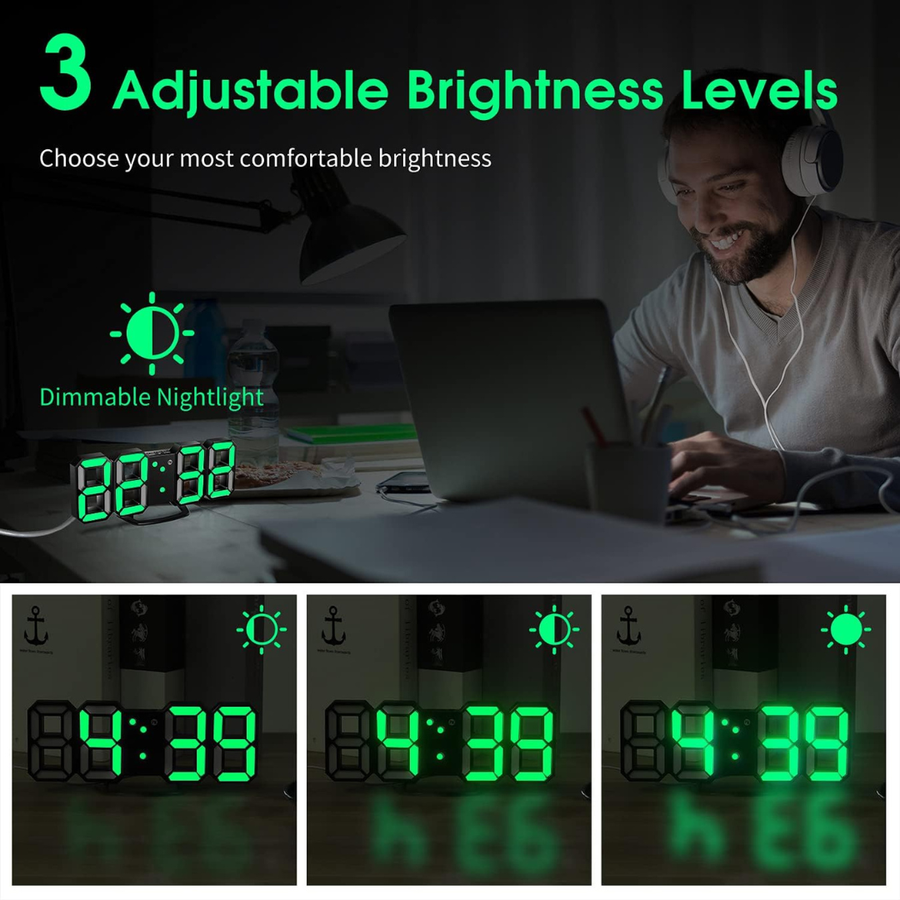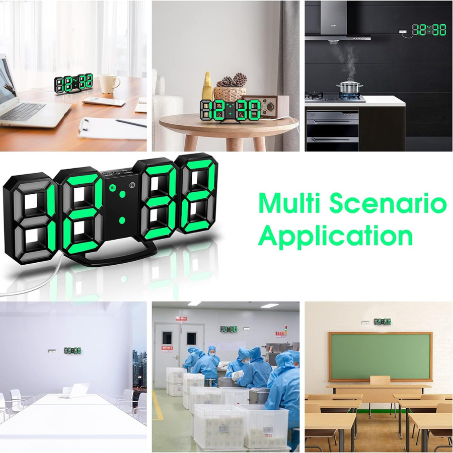 3D LED Wall Clock(with Cable but NOT Battery Operated)-GREEN