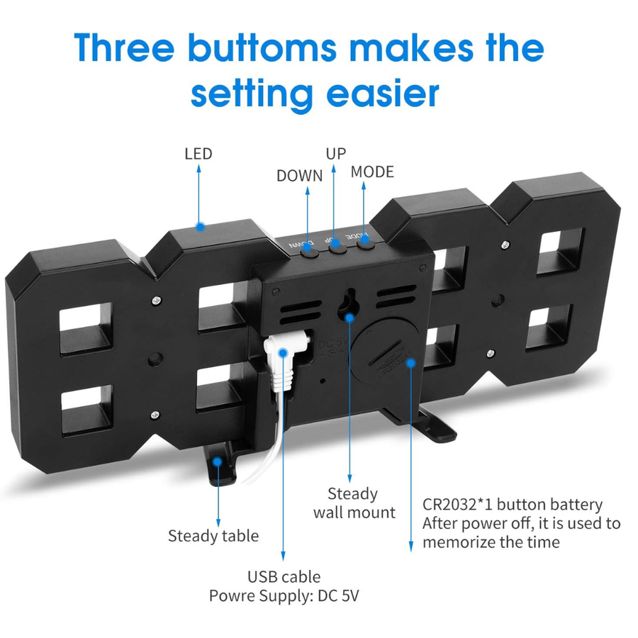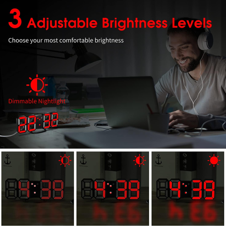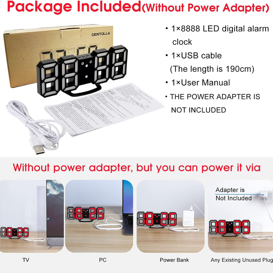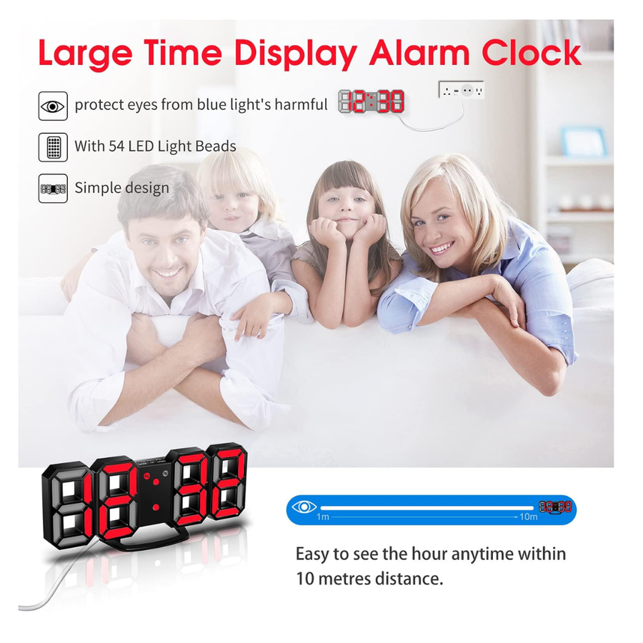 3D LED Wall Clock(with Cable but NOT Battery Operated)-RED