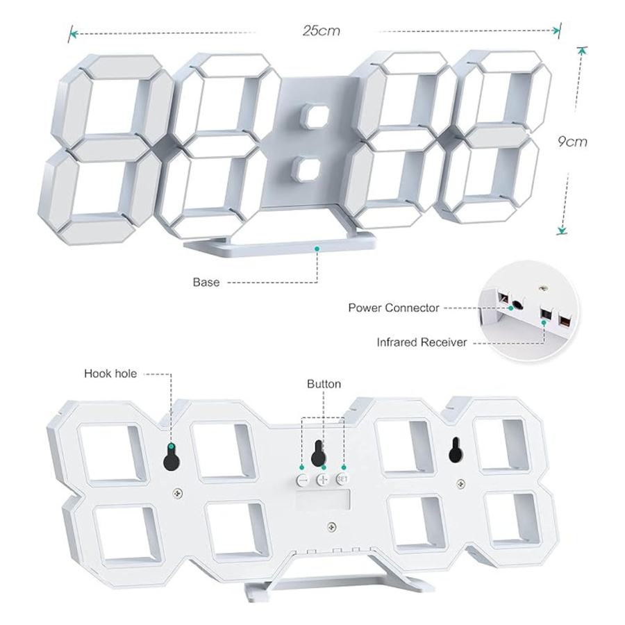 3D LED Wall Clock(with Cable but NOT Battery Operated)-WHITE