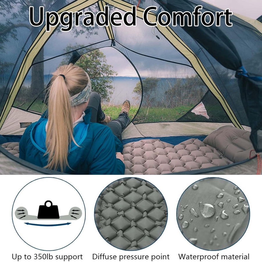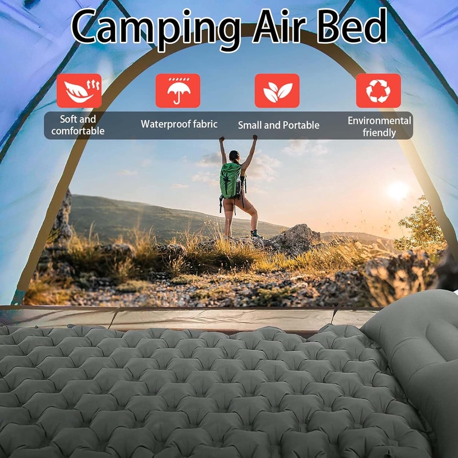 Inflatable Camping Mattress – Ultra Comfort Sleeping Pad with Built-in Pillow