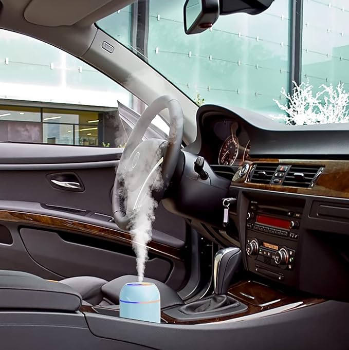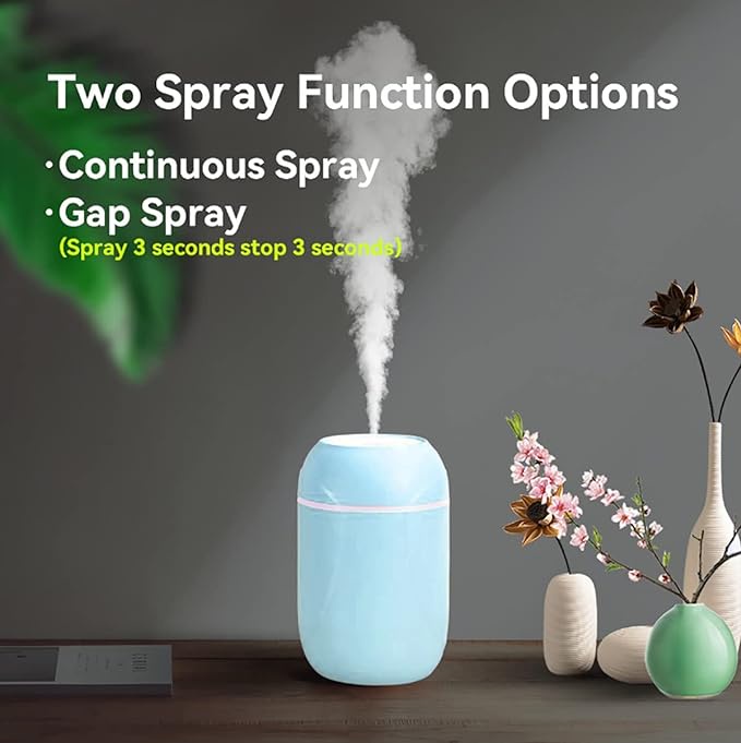 【Long Working Time】This mini humidifier has two modes. When you press the button first time, it will continuously spray for 5 hours. When you press again and it will intermittently spray for 8 hours. 260ml large capacity produces longer mist.