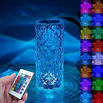 Crystal Lamp,Rose Diamond Table Lamp,16colors RGB with Touch and Remote Control,USB Rechargeable Decorative Acrylic Rays lamp,Atmosphere Light for Living Room,Party,Bar