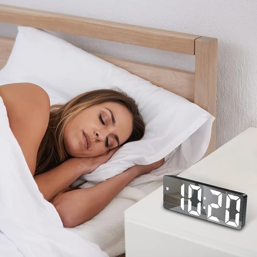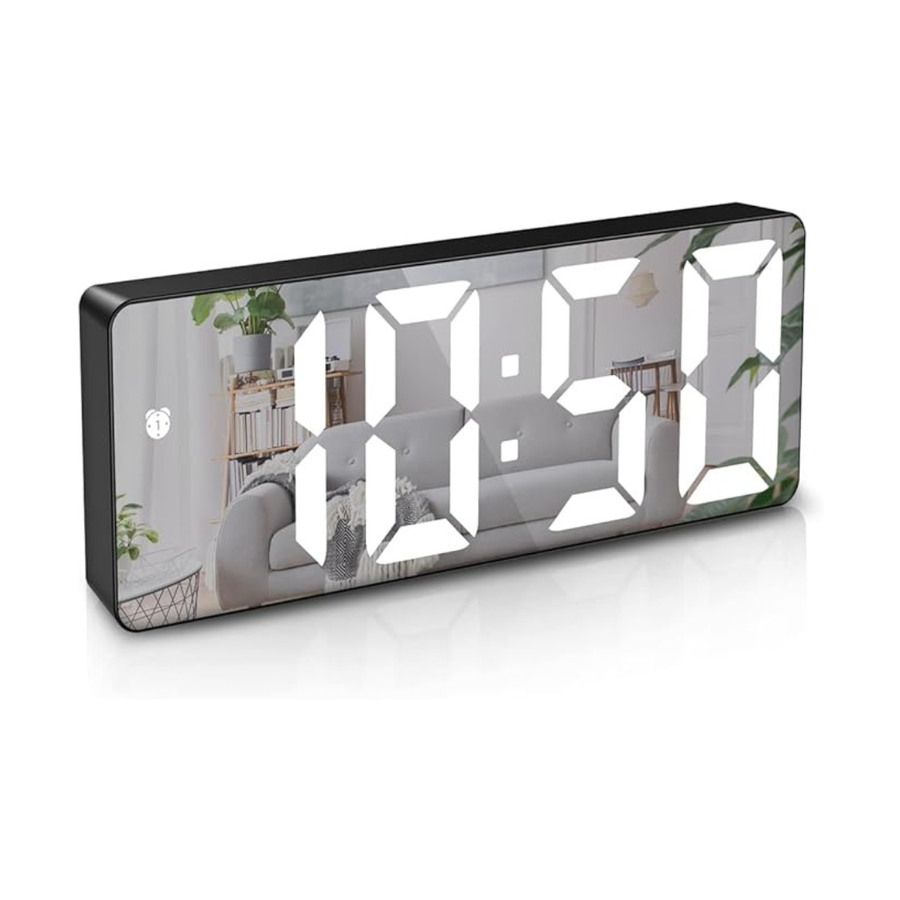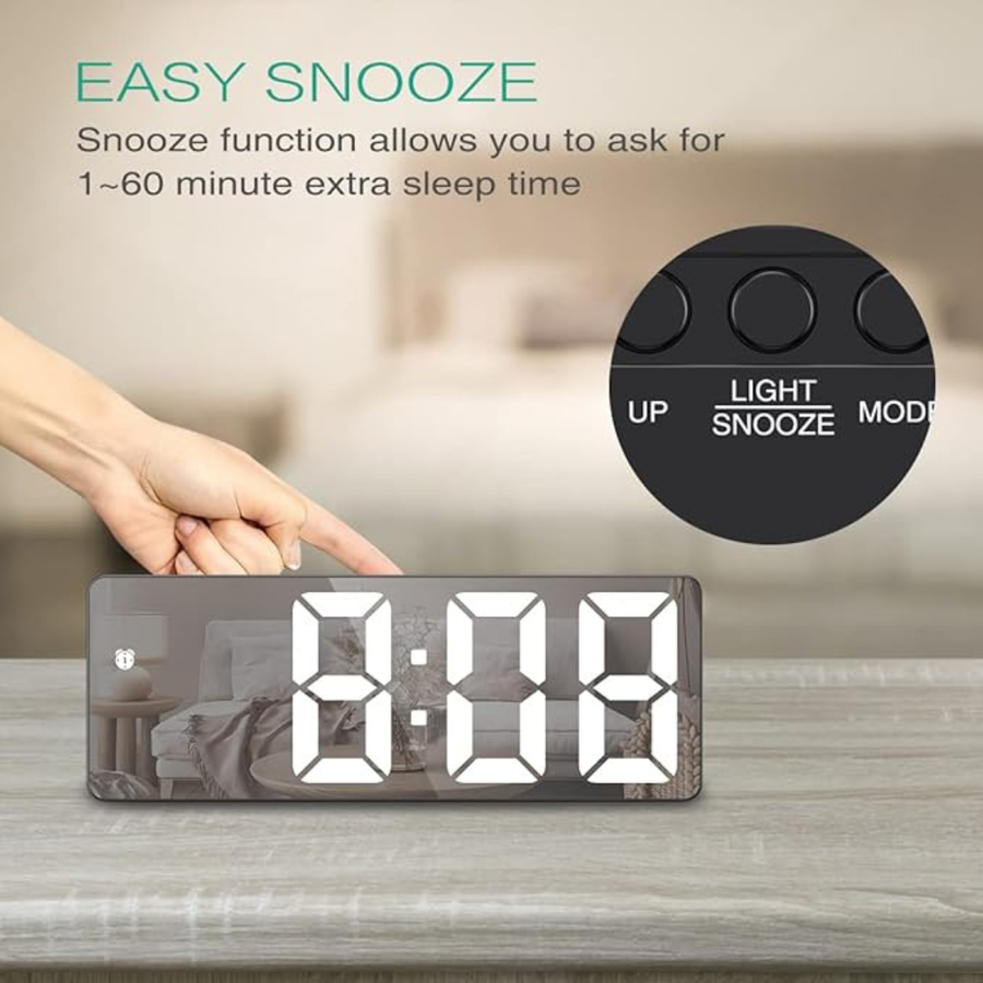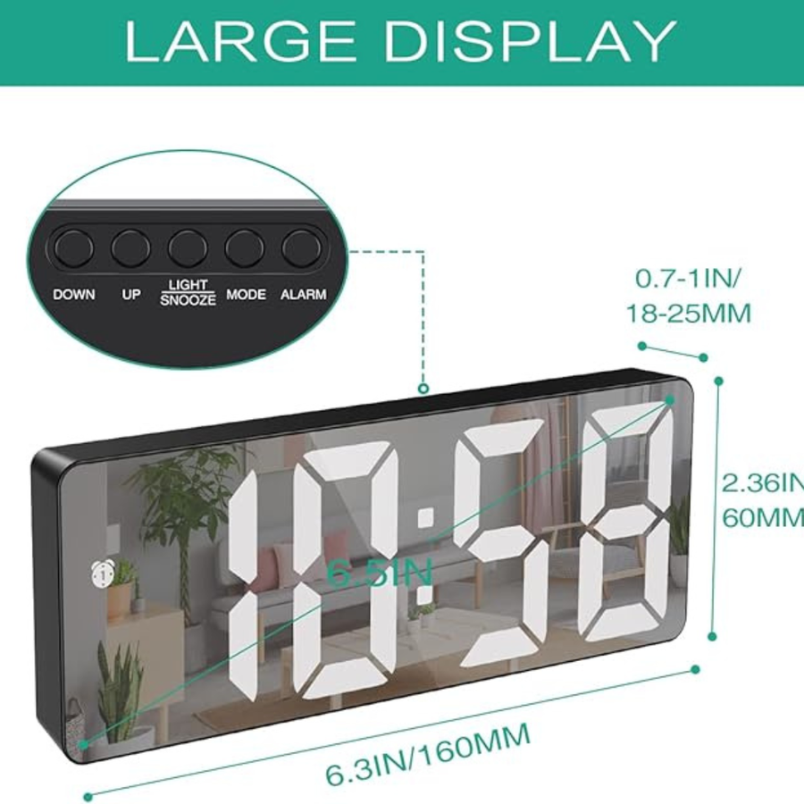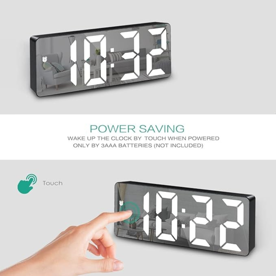 Digital Alarm Clock, (New Version)LED Mirrored Clock with USB Charging Ports