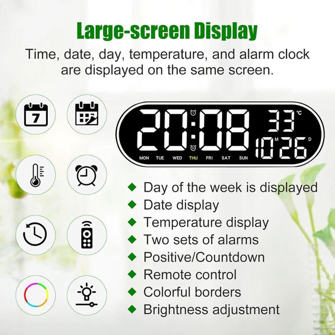 Add a modern and distinctive touch to your home or office with the GH8021 digital wall clock, with clear LED screen to display the time, date, and temperatur