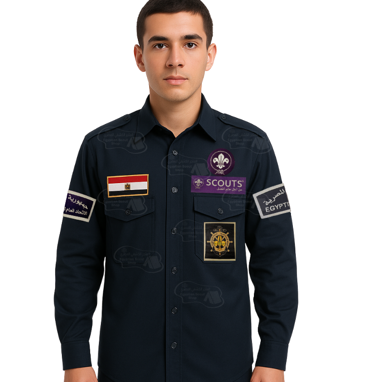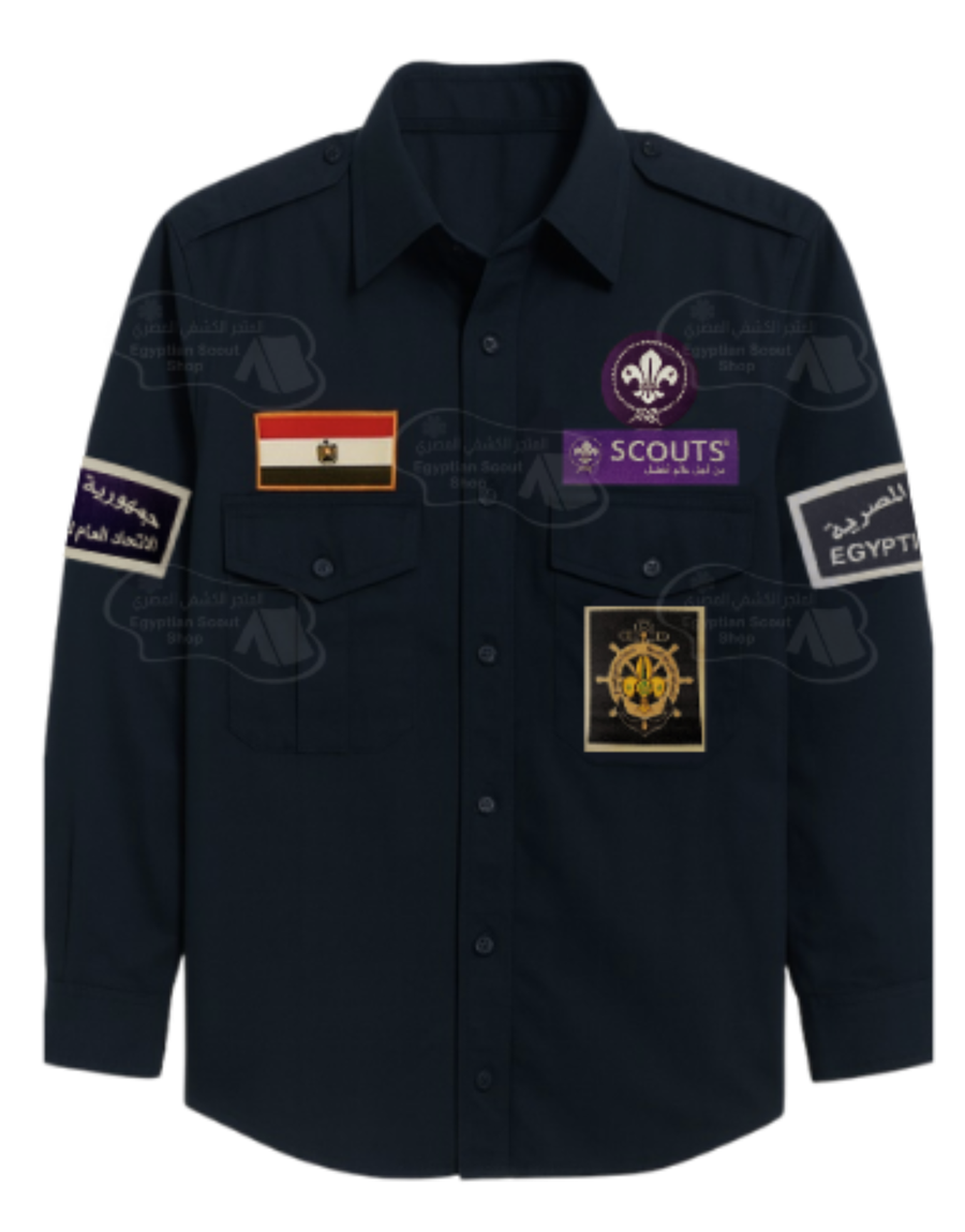قميص كشافة بحريّة مصري مصنوع من قماش القطن عملي يمنح راحة في الاستخدام خلال الأنشطة والمعسكرات. يتضمن شارات الكشافه البحريه واضحة مثل شارة الكشافه وشارة العلم المصري وشارات الأكمام. تصميم كلاسيكي بأزرار أمامية وجيبين بغطاء لضمان مظهر منظم يناسب زي الكشافة. مناسب للاستخدام التدريبي والفعاليات الرسمية والمهام البحرية.