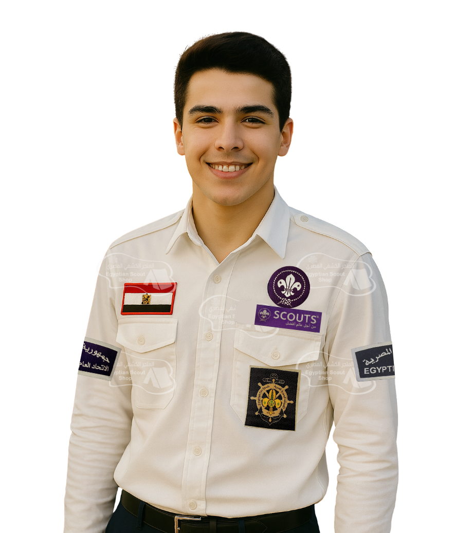 قميص كشافة بحريّة مصري مصنوع من قماش القطن عملي يمنح راحة في الاستخدام خلال الأنشطة والمعسكرات. يتضمن شارات الكشافه البحريه واضحة مثل شارة الكشافه وشارة العلم المصري وشارات الأكمام. تصميم كلاسيكي بأزرار أمامية وجيبين بغطاء لضمان مظهر منظم يناسب زي الكشافة. مناسب للاستخدام التدريبي والفعاليات الرسمية والمهام البحرية.