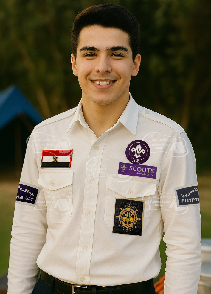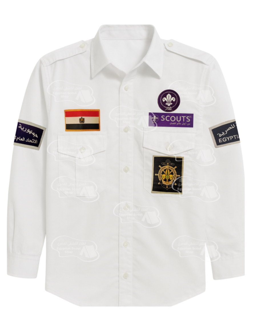 قميص الكشافة البحرية المصريّة – قماش قطن مخلوط مع شارات البحريه لون ابيض