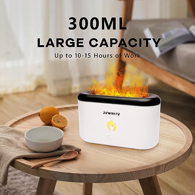 Flame Humidifier Aroma Diffuser,300ml Flame Aroma Diffuser,Fire Humidifier,Essential Oil Diffuser with LED Night Light & Waterless Auto-Off Protection for SPA, Home,Yoga,Office-Super Quiet