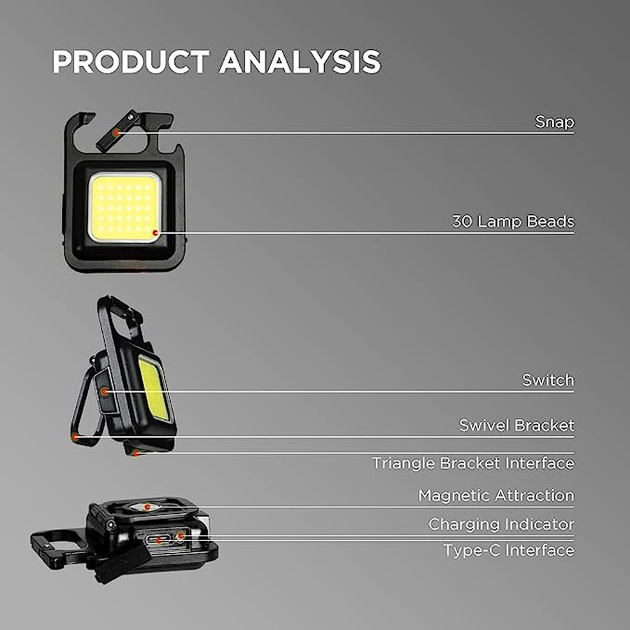 【Super Bright COB Light】This COB working light has 30 high-performance COB wicks, which can emit up to 2000 lumens. Our light offers a wide-angle illumination with wide coverage. Our mini COB working Flashlights with the extra bright LED spot light is suitable for a variety of scenarios to meet your various needs, for example, hiking, running, cycling, night walking, night repair or emergency situations. Just use the rechargeable pocket LED flashlight as a small work light and emergency light.