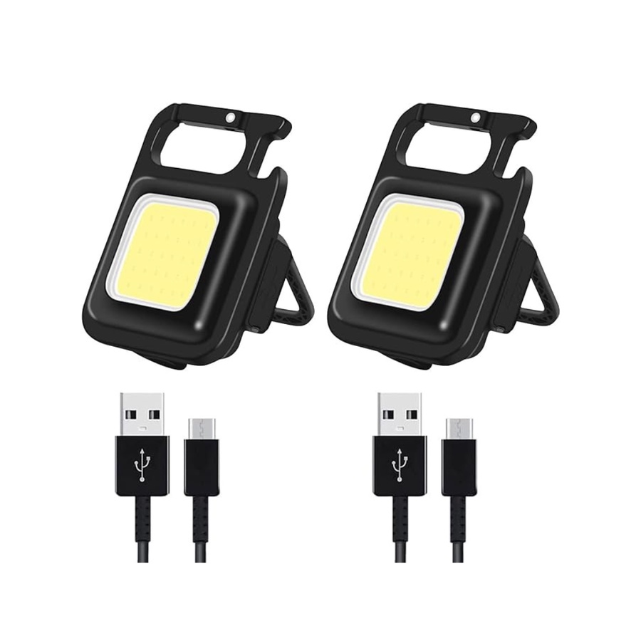 Portable Small Led Keychain Flashlights COB Work Light 2000Lumens Rechargeable Waterproof 5 Light Modes Mini COB Working Flashlights with Collapsible Bracket and Strong Magnet (DT- COB Square 2 pack)