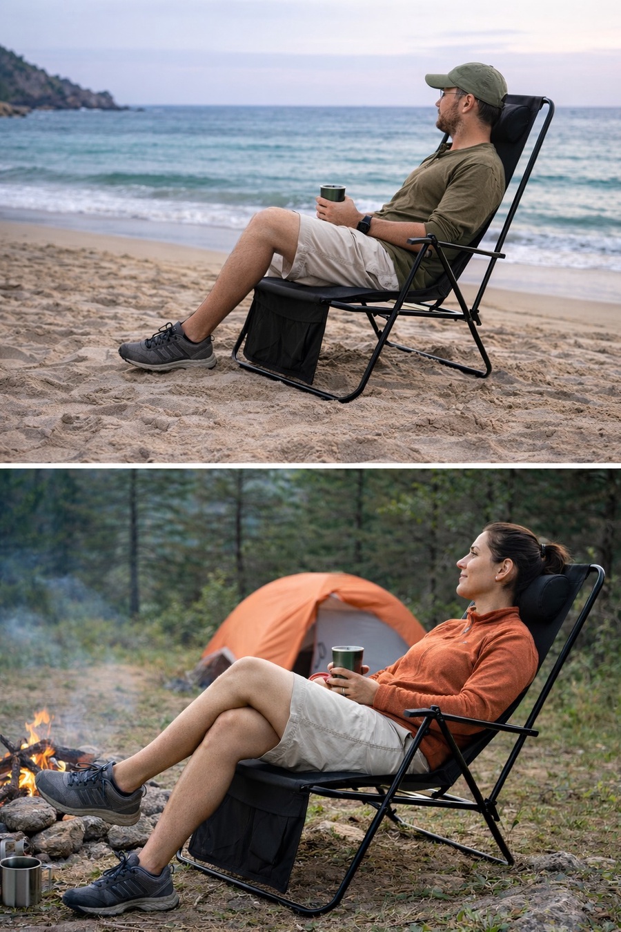 Enjoy ultimate comfort on trips, at the beach, or even in the park with this practical chair designed for full-body support. It features a high back with a padded headrest that provides ideal neck and shoulder relaxation, along with an ergonomic recline design that supports your back during extended periods of sitting.