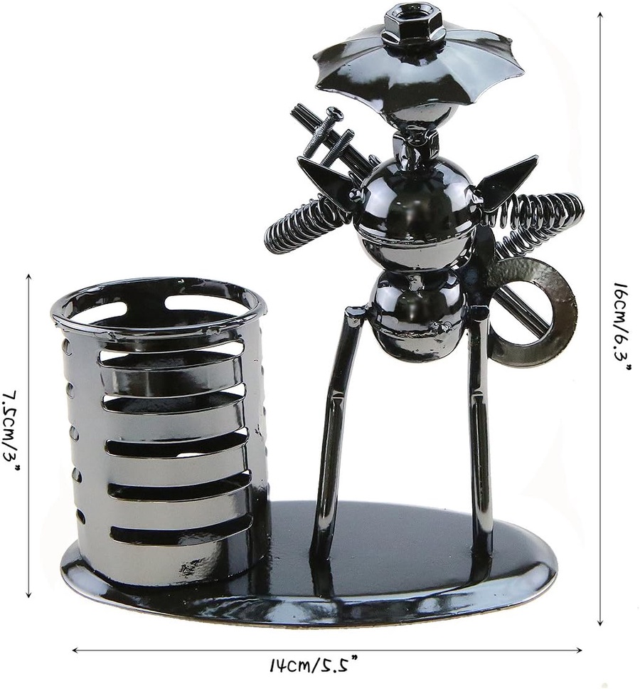حامل أقلام على شكل رجل قبعة حديدية، شخصية إبداعية، حامل أقلام، وعاء، مكتب، طلاب، سطح مكتب، موسيقى، ديكور، ديكور، لعبة، هدية، زينة