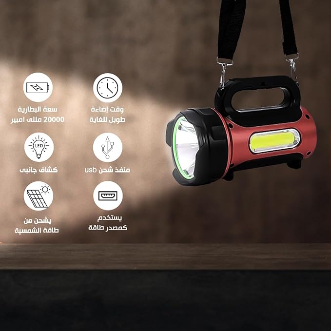 كشاف اضاءة بمقبض يد ببطارية 20000 مللي امبير في الساعة بمدة تشغيل 16 ساعة، يوفر رؤية بمدى كيلومتر، 7 اوضاع اضاءة - رفيقك الاساسي في الهواء الطلق، الموديل: HEL-T93