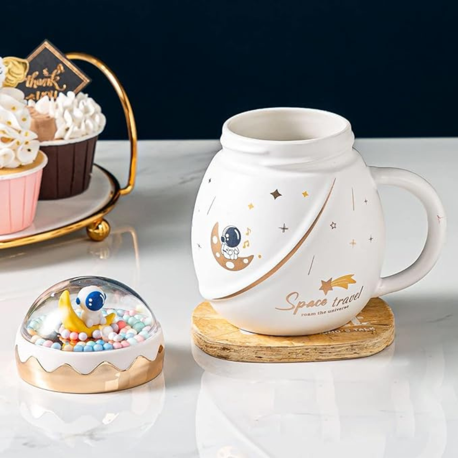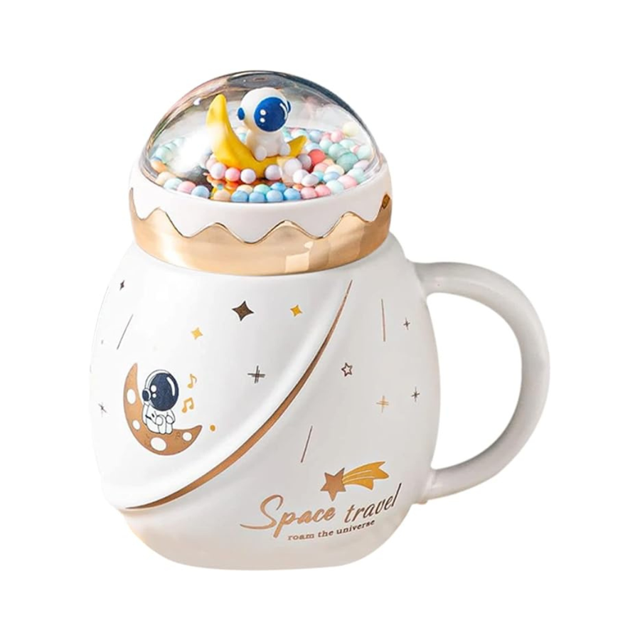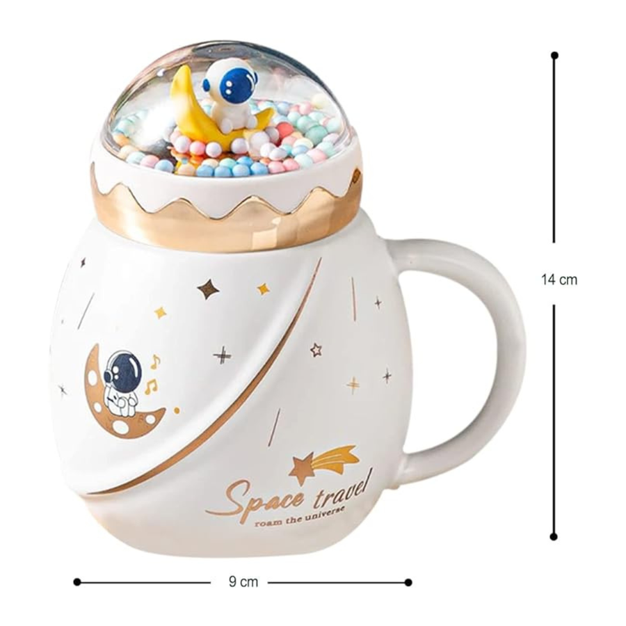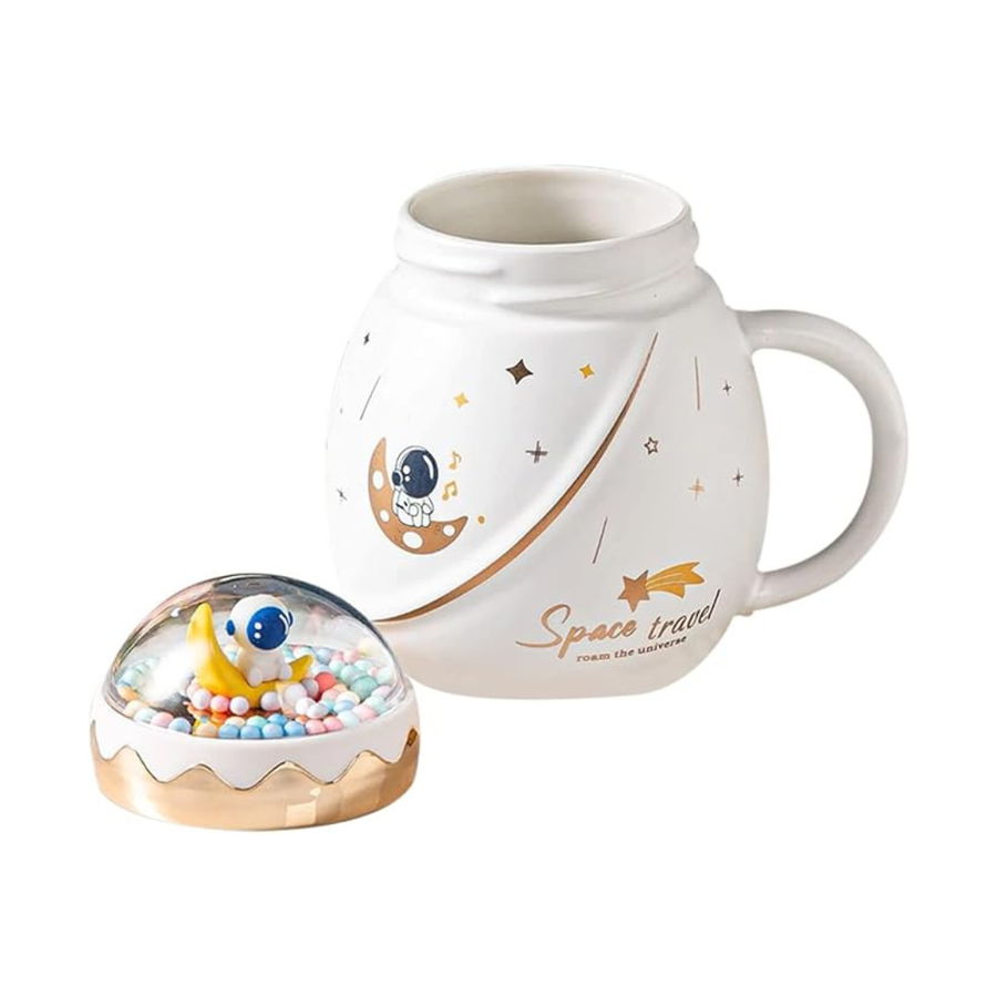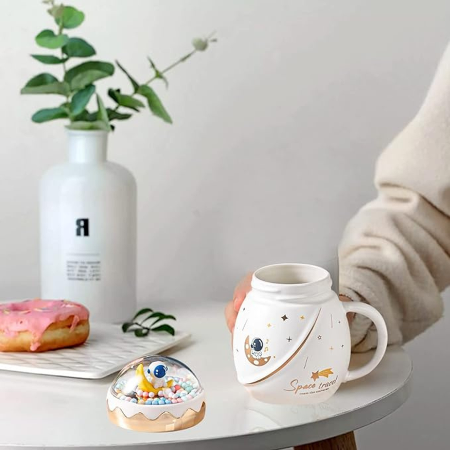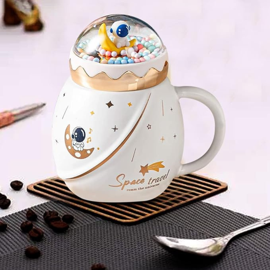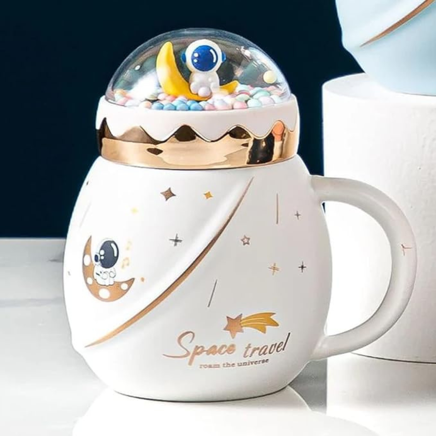 LIFEHAXTORE Space Travel Astronaut Mug with Lid | (Pack of 1, Cream Color)