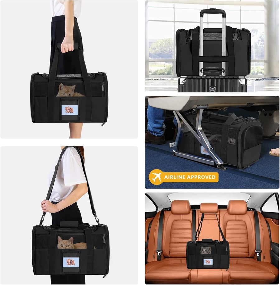 Large Cat Carrier with Soft Sides Foldable Carrier Cat Carrier for Two Cats 20 inches 20 inches Carrier for Pets Under 11 kg