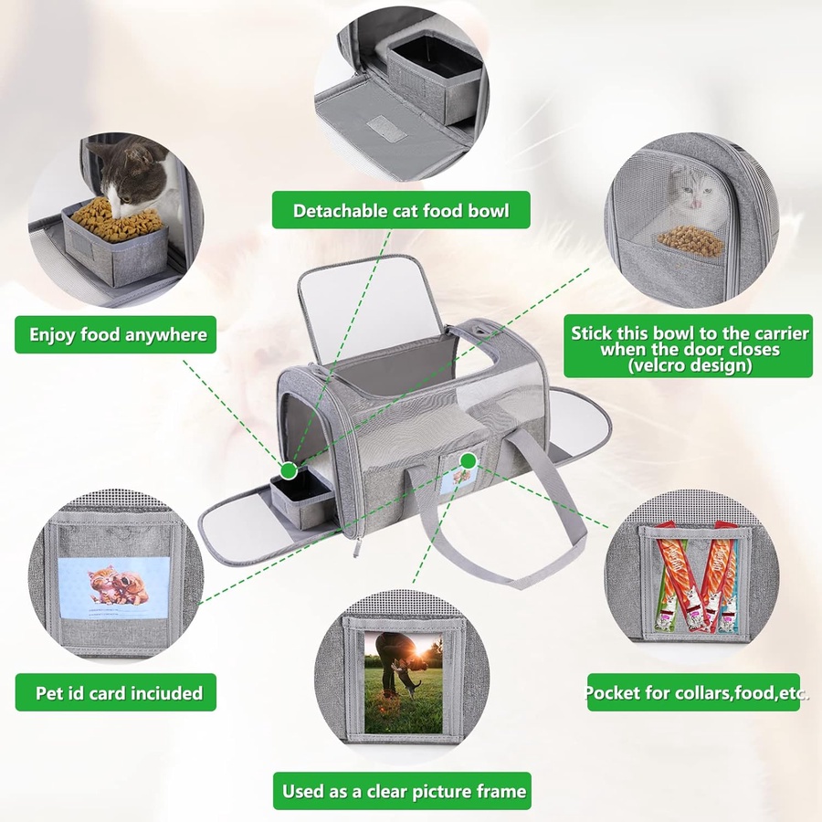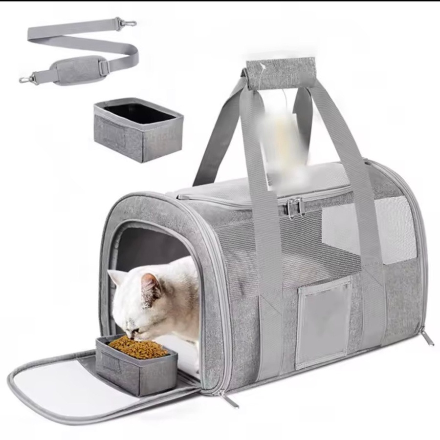 Large Soft-Sided Cat Carrier Carrier for pets under 25 lbs Foldable Carrier Cat Carrier for Two Cats Travel Carrier Bag, Gray 20-Inch