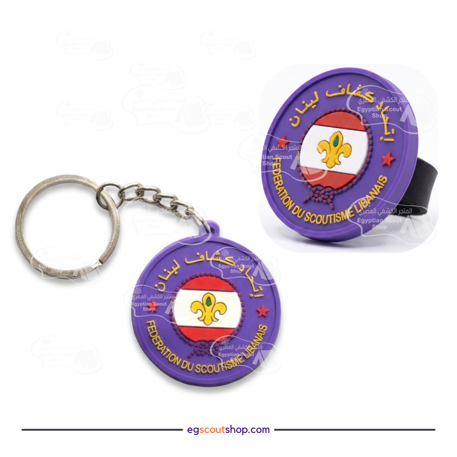 نقدم لك هذا الطقم الحصري والفاخر، المكون من ويجل (رابط منديل) وميدالية مفاتيح، كلاهما يحمل شعار "اتحاد كشاف لبنان" (FEDERATION DU SCOUTISME LIBANAIS).