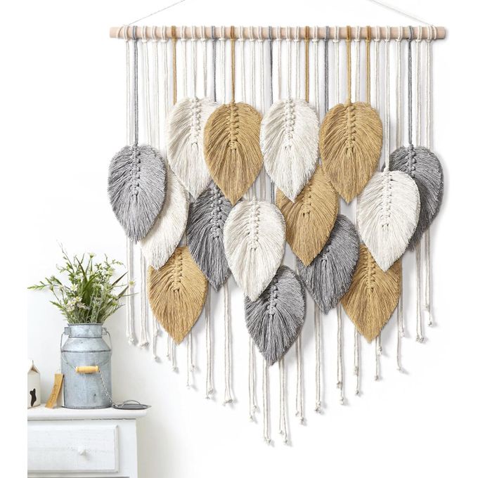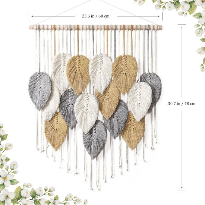 Macrame Woven Leaves Wall Hanging Tapestry 78 X 60cm