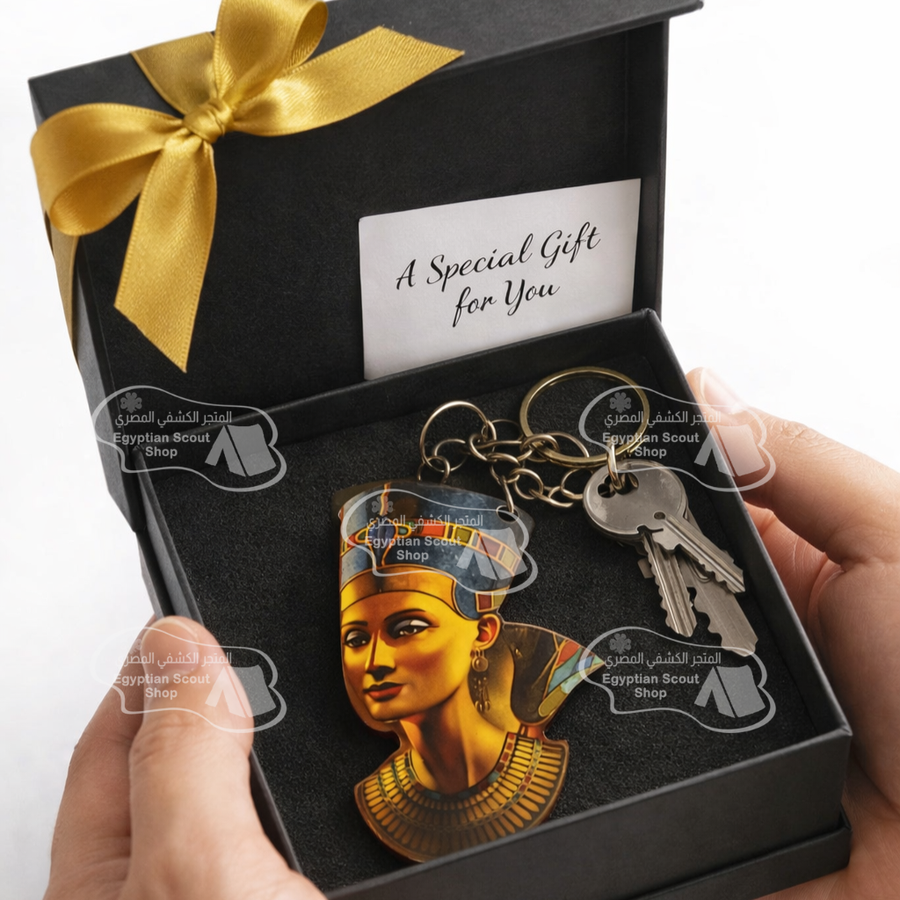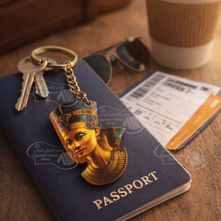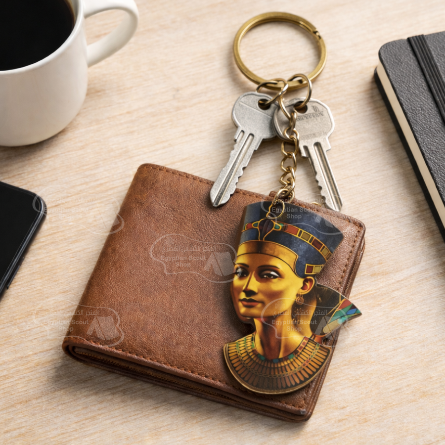 ميدالية مفاتيح بتصميم الملكة نفرتيتي مستوحاة من جمال وعظمة الحضارة المصرية القديمة، تضيف لمسة فريدة وأنيقة لمفاتيحك أو حقيبتك. تصميمها المميز يجعلها قطعة لافتة تعبر عن الذوق الراقي وحب التاريخ.