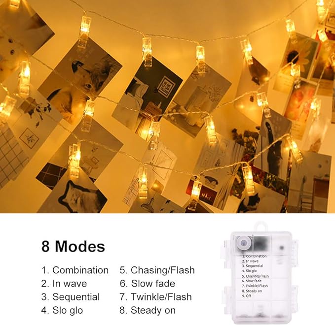 Romantic Creator -- The clip string lights is a very unique way to display pictures in your house, make the plain white wall come to life with pictures of all the things that matter to the one you care. creating excellent illumination and a romantic atmosphere.