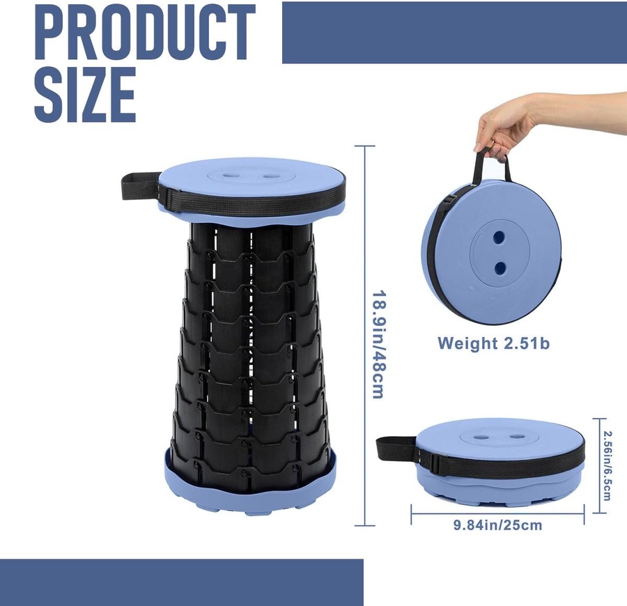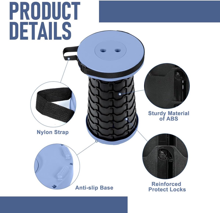 كرسي تلسكوبي محمول وخفيف الوزن وقابل للطي - كرسي بلاستيكي متداخل