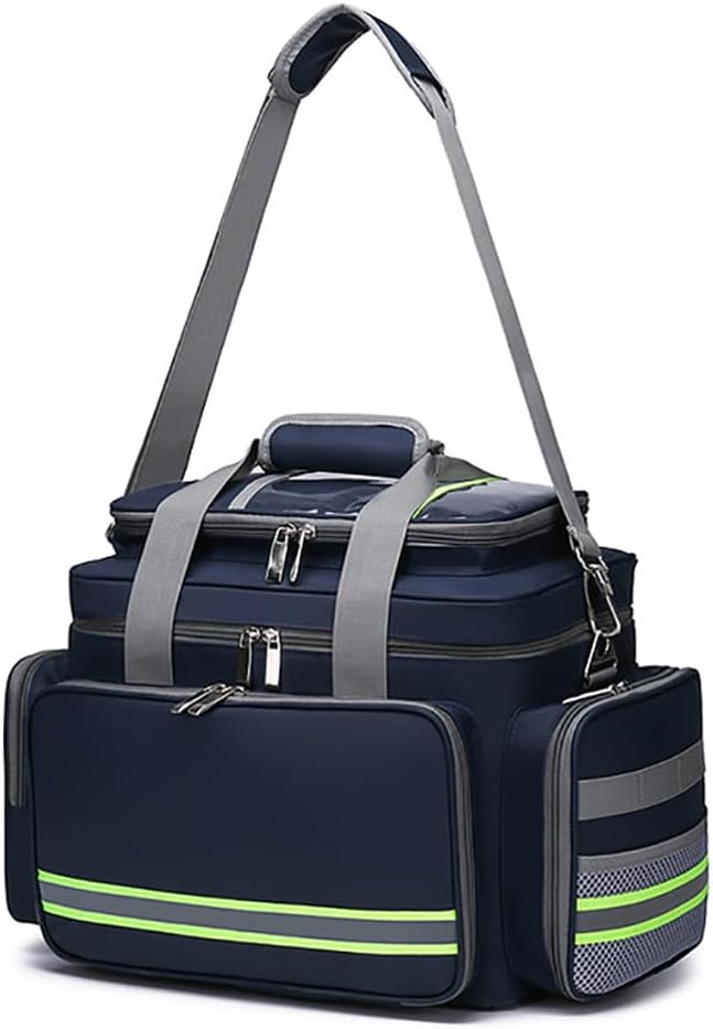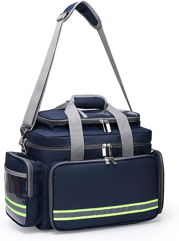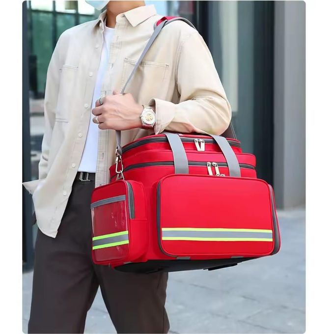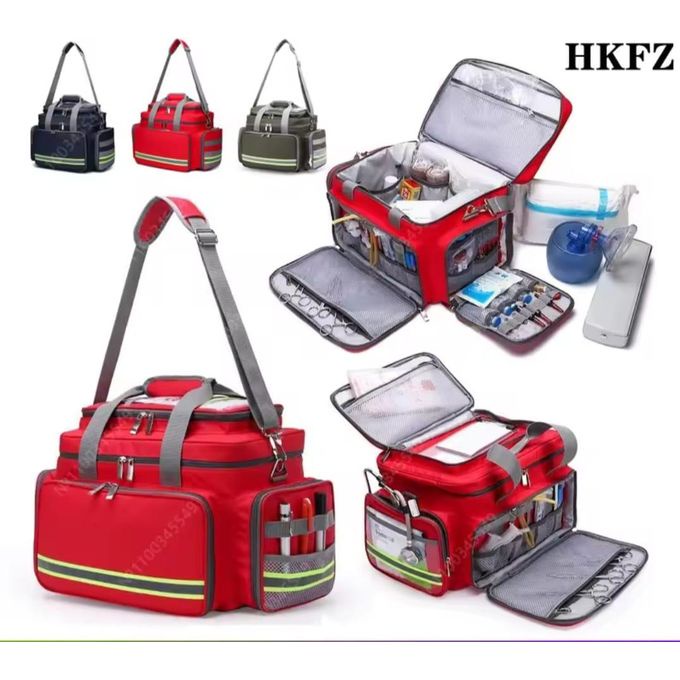 A durable and spacious first aid bag designed to store and organize essential medical supplies. Perfect for doctors, paramedics, nurses, and even home or travel use. It features multiple compartments and dedicated pockets for easy access to medications, medical tools, and emergency essentials.