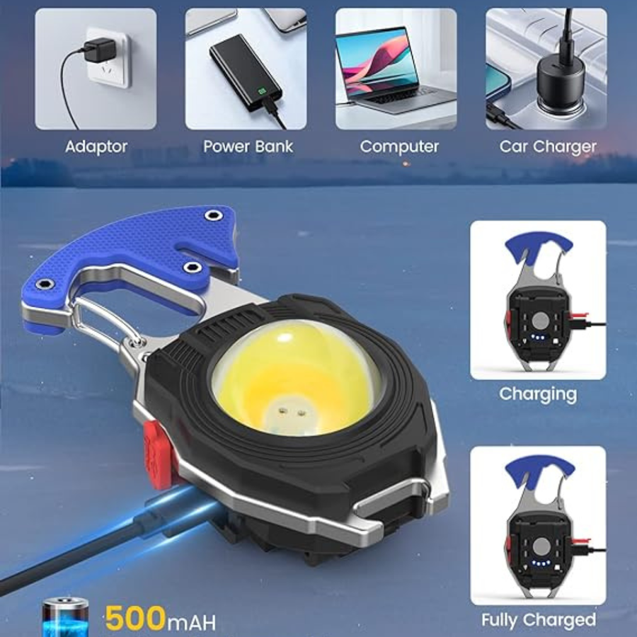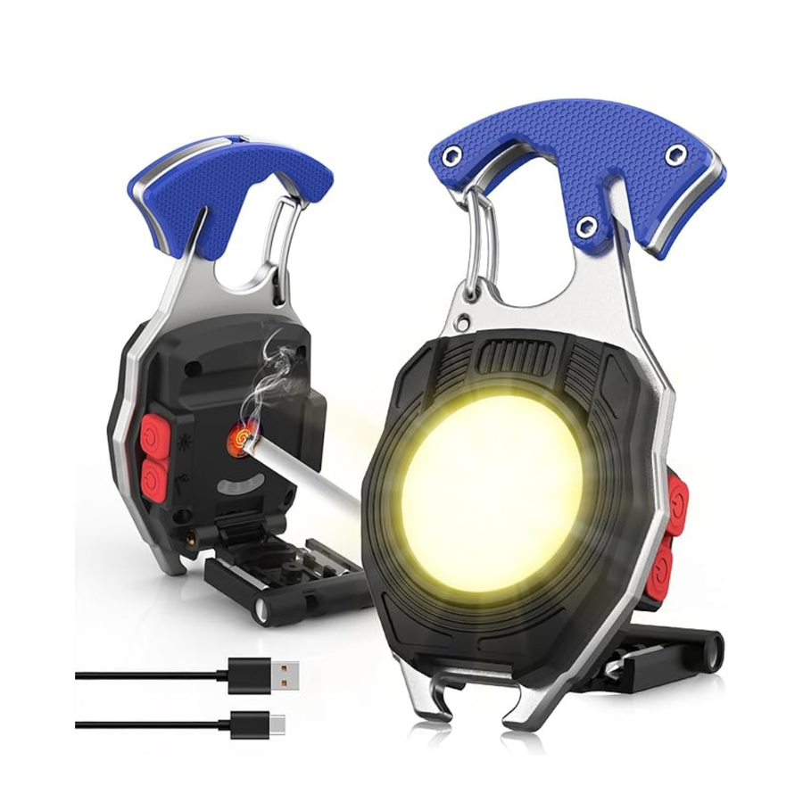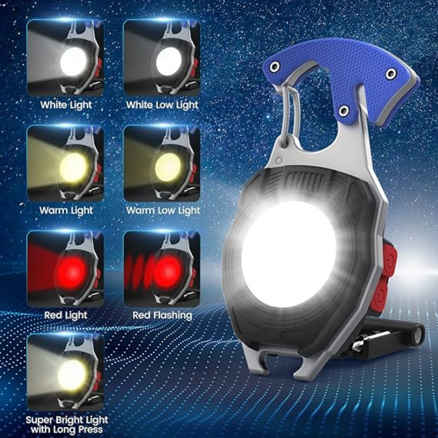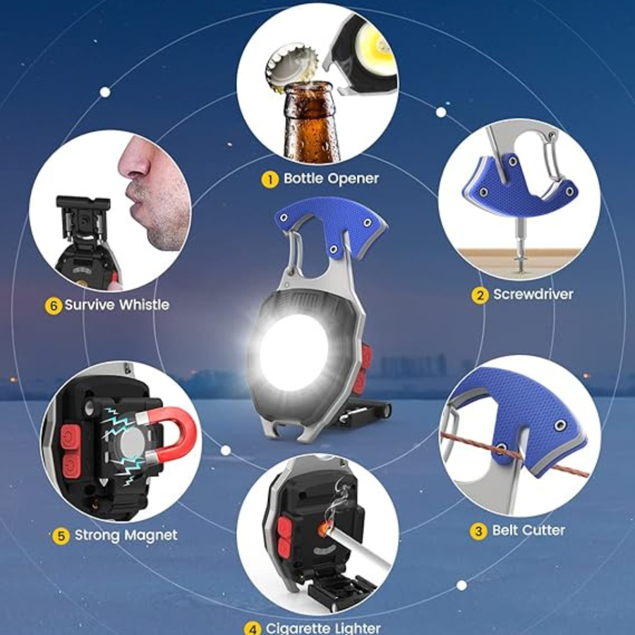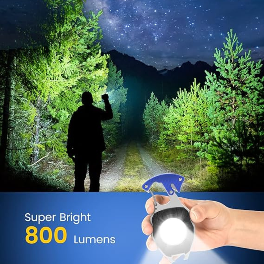 【Multifunctional & Portable】Small and super bright mini work light can be used as a bottle opener, cigarette lighter, screwdriver, belt cutter, whistle. It is equipped with a powerful magnet and clasp, Weighing only 71g,so you can carry it in your pocket, at home, in your car or backpack at will, making it easy to access at any time.