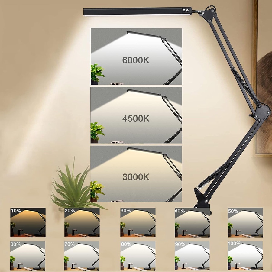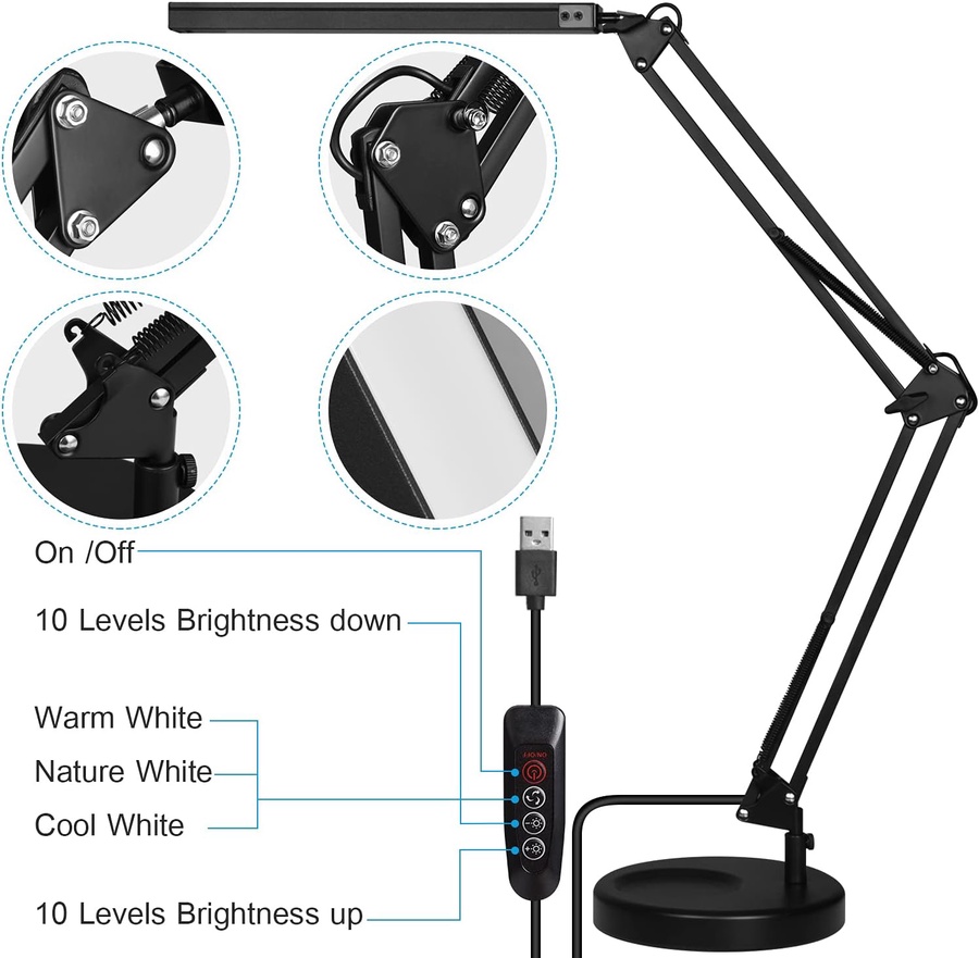سكيه ليو مصباح مكتب LED بقاعدة مستديرة، مصباح بذراع متارجح مع مشبك، ضوء ناعم للعناية بالعين، مصباح قراءة USB قابل للتعتيم 14 واط للدراسة والمكتب والاستوديوهات
