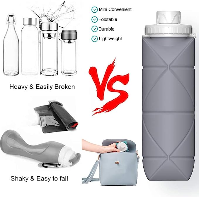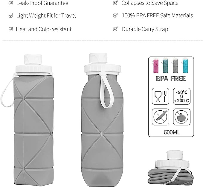 زجاجات مياه قابلة للطي- 600 مللي (اخضر)