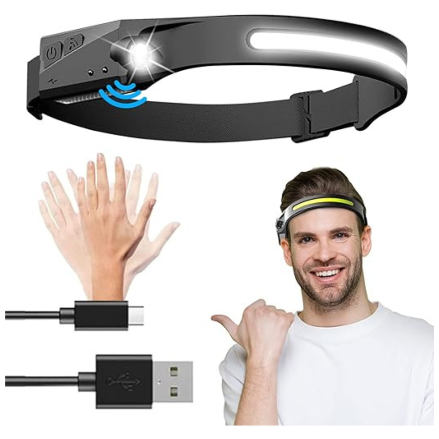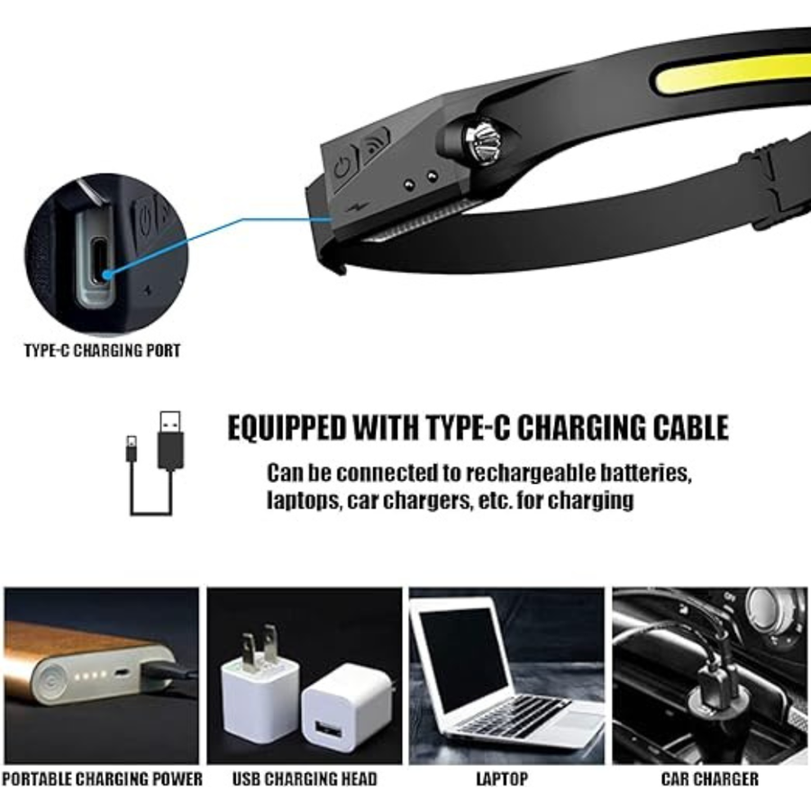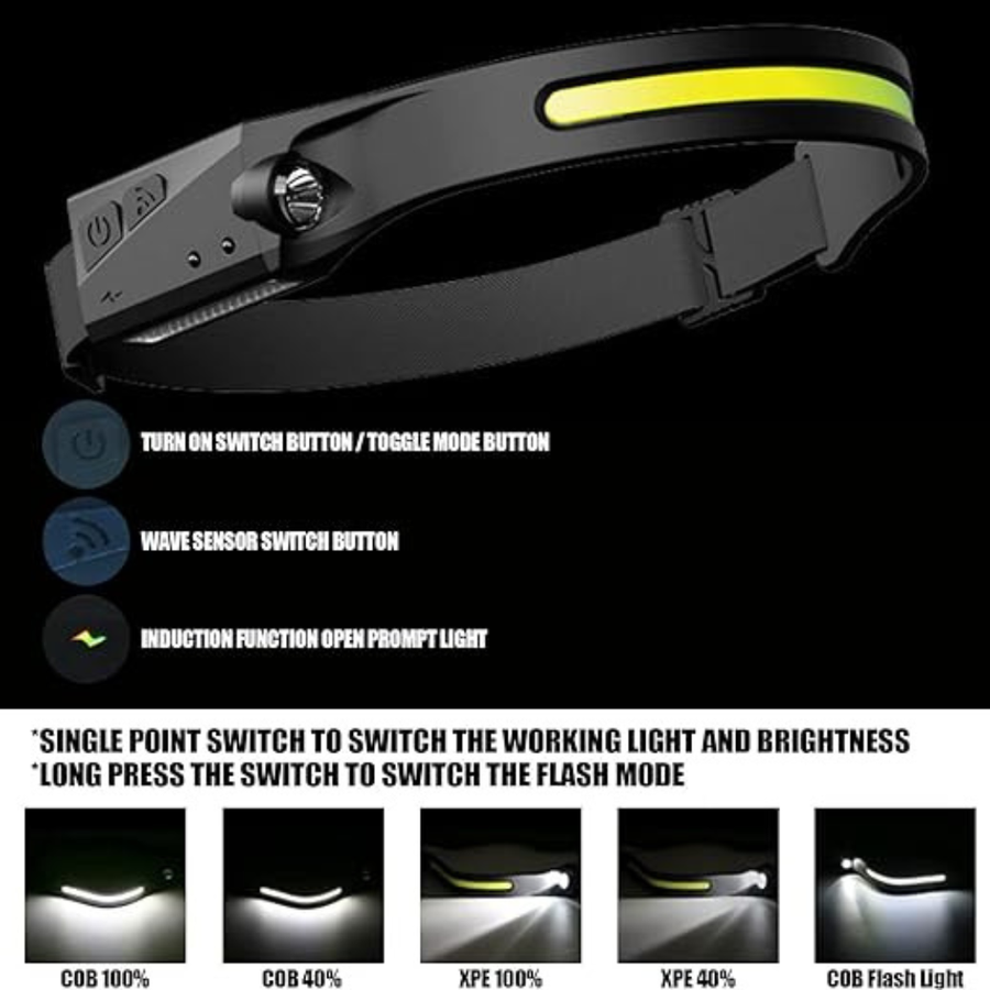 💡Upgrade Led Headlamp With 6 Light Modes - Our rechargeable headlamp has 6 working modes, COB high mode, COB low mode, LED high mode, LED low mode, long press for 2 seconds to switch the strobe mode, press the power button, then press the sensor button, the motion sensor mode is turned on , which can be switched at will