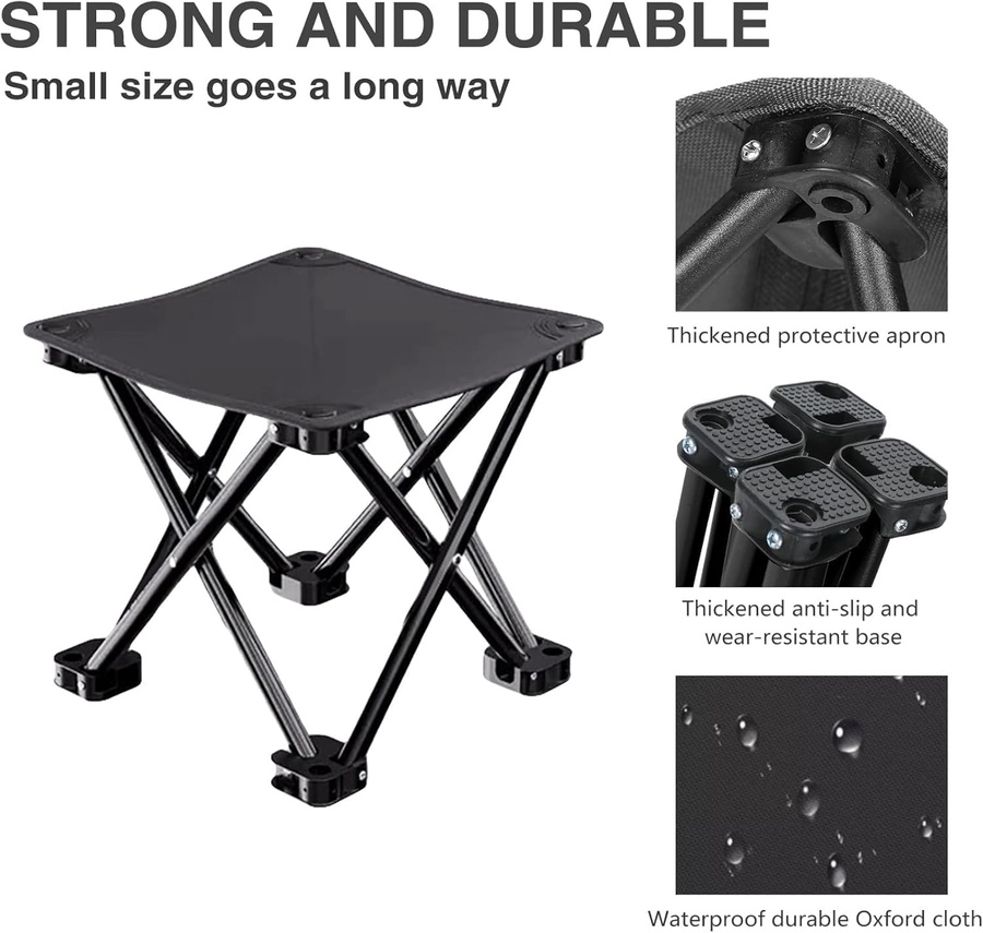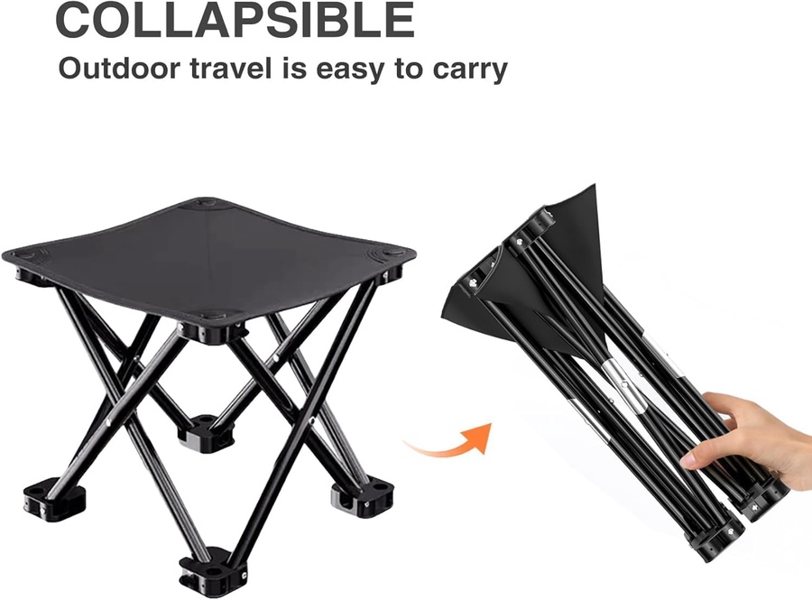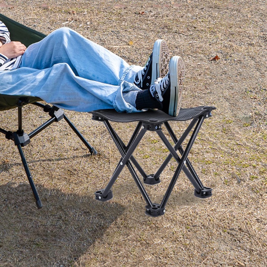 harayaa Collapsible Stool Camp Stool Heavy Duty Footrest Small Chair Easy to Carry Folding Stool Foldable Camping Stool for Camping Fishing Beach, Black with Bag
