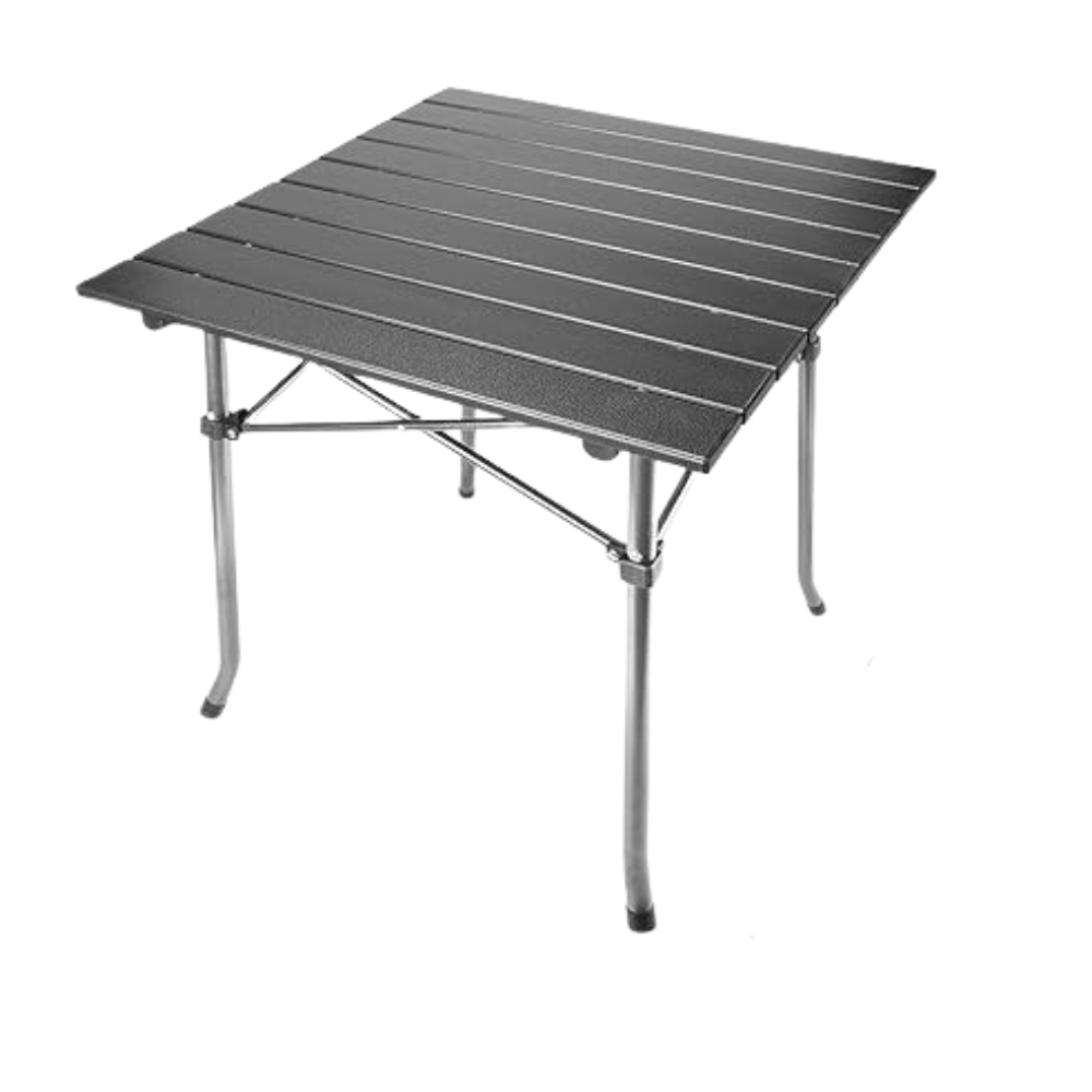 Folding Outdoor Table with Aluminum Top and Carrying Bag. This table is perfect for camping, picnics, cooking, the beach, hiking, and fishing. Dimensions: 53cm x 51cm x 50cm