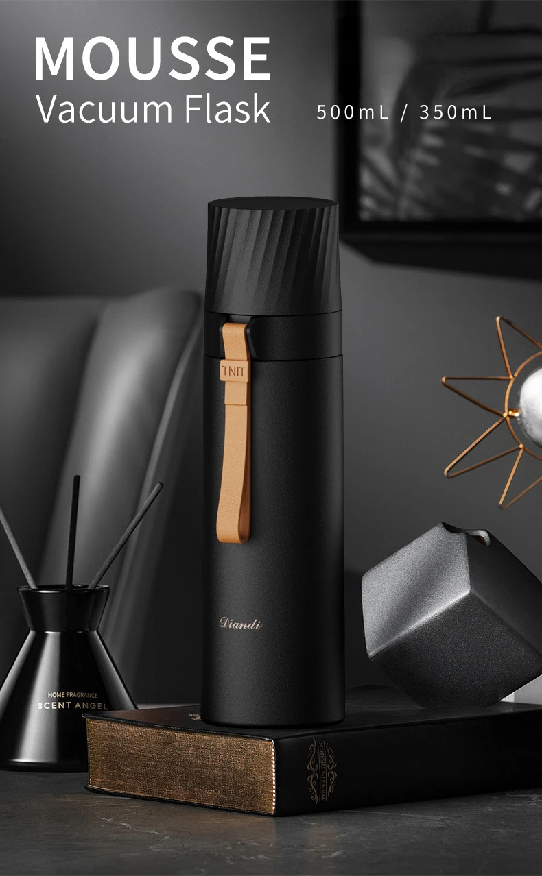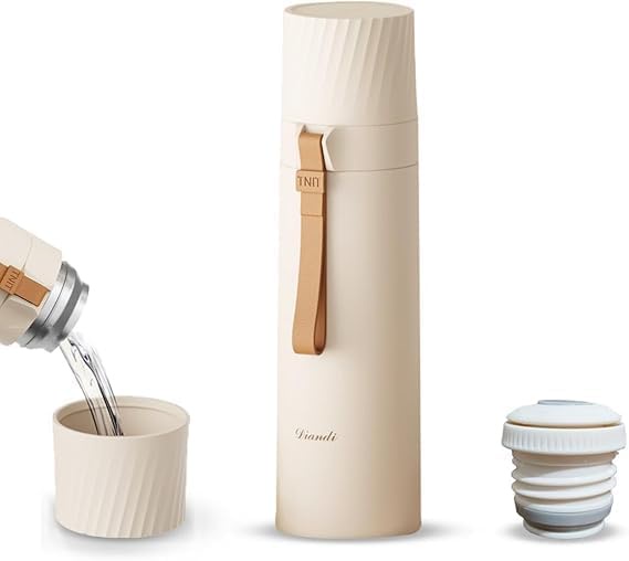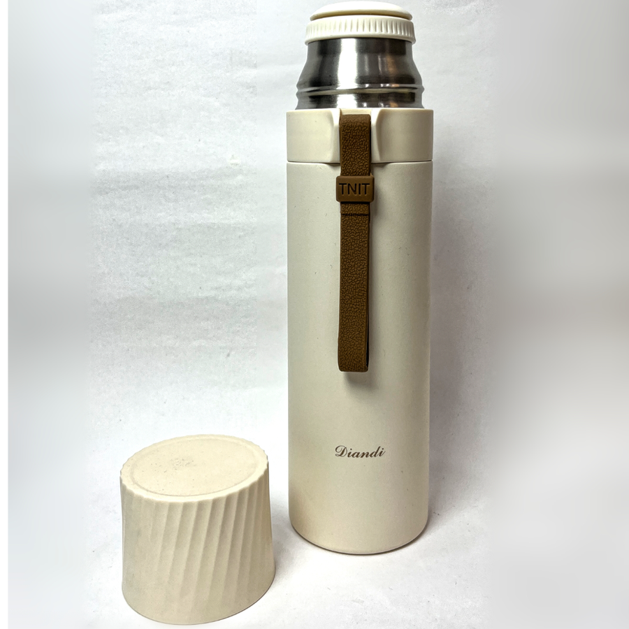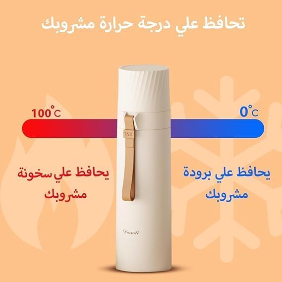 ترمس حراري رياضي بسعة كبيرة معزول حراريا مع مقبض مصنوع من الفولاذ المقاوم للصدأ ومتين مع غطاء كبس وكوب ماء كزجاجة مياه معزولة للسفر، لون أبيض، سعة 500 مل
