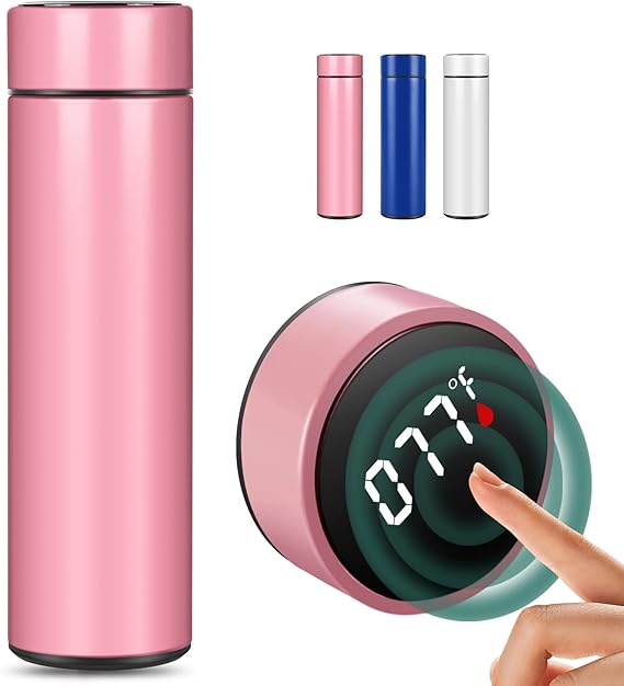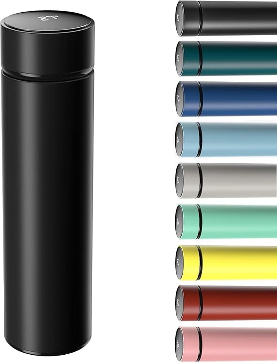 زجاجة مياه ذكية من الفولاذ المقاوم للصدأ سعة 500 مل مع شاشة لمس ذكية لعرض درجة الحرارة، ثيرموس للمكتب والمنزل والجيم واليوغا والتخييم في الأماكن الخارجية من فوتجير (ألوان متنوعة)