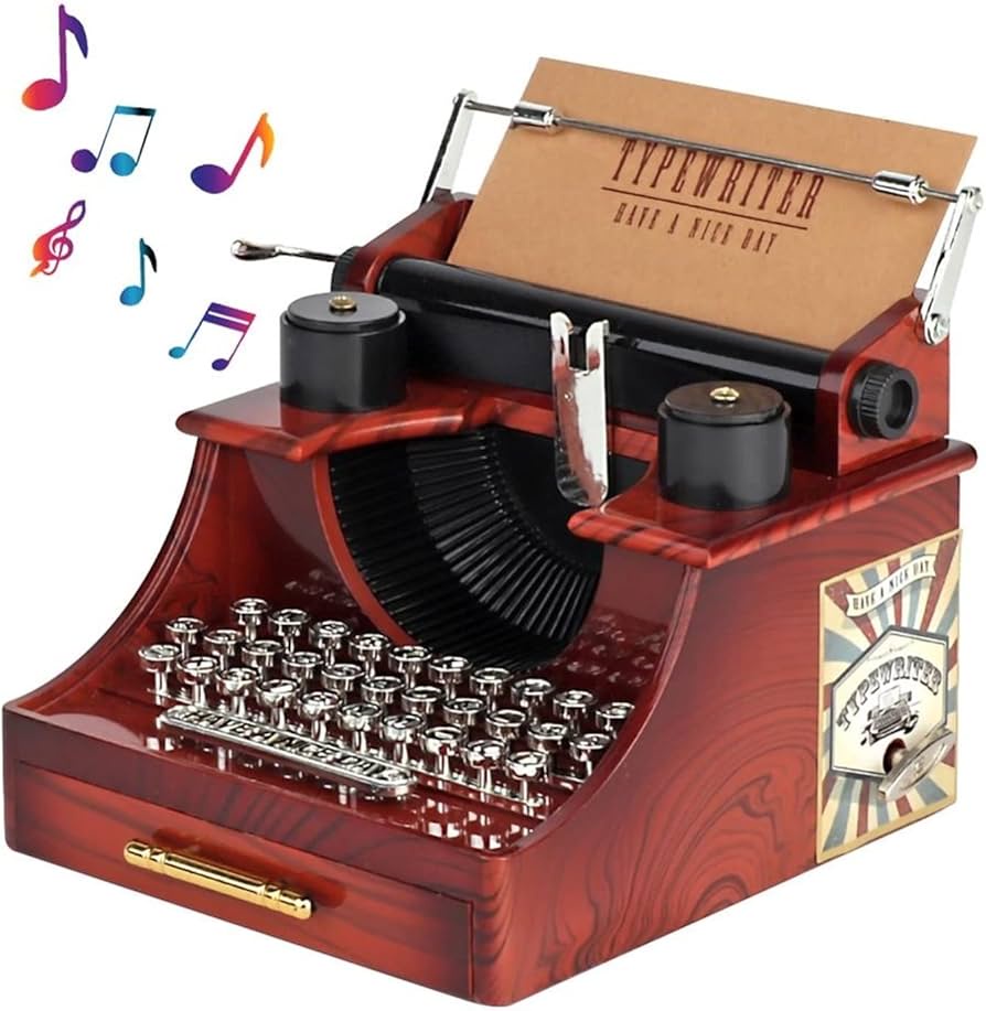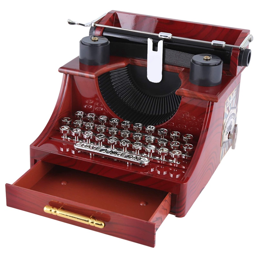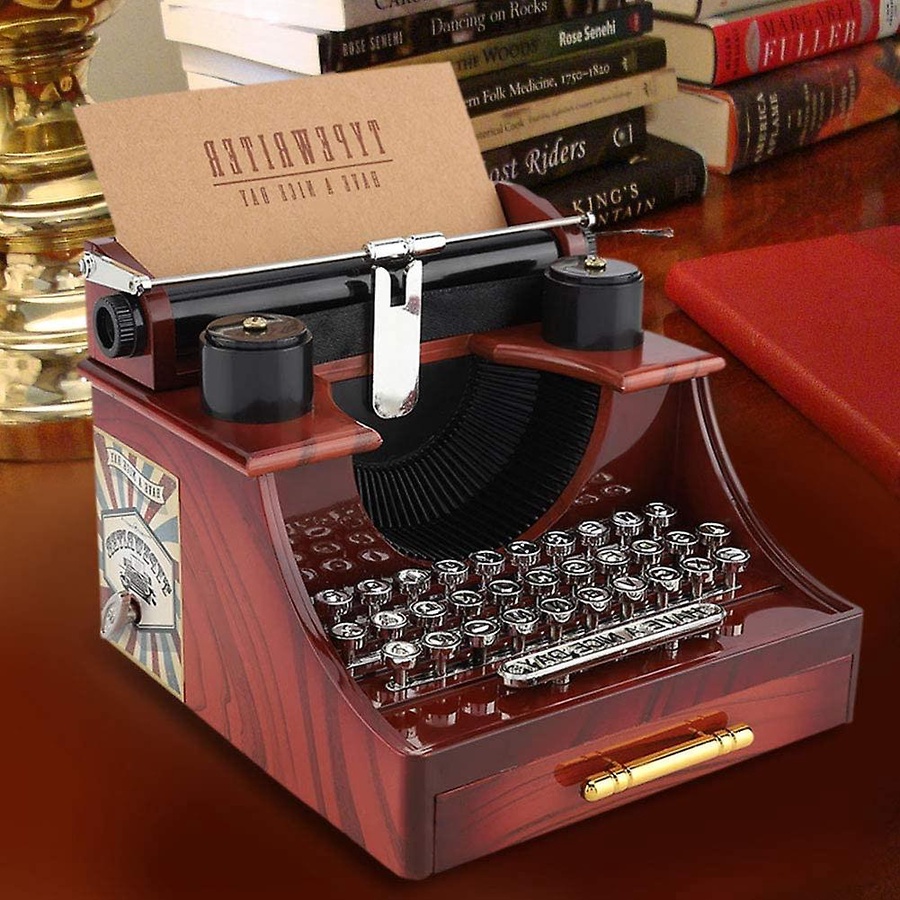 صندوق الموسيقى على شكل الة كاتبة عتيقة مع درج هدية تعمل بنعومة صناديق المجوهرات للديكور المنزلي او المكتب غرفة الدراسة بلاستيك من تينازا بني