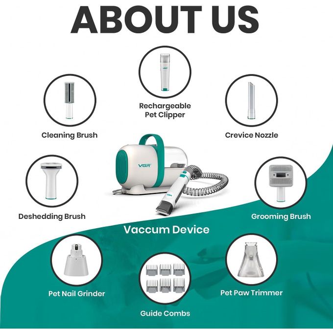VGR 7-in-1 Multifunctional Pet Grooming Kit: Cleaning And Drying, High-Power Vacuum Cleaner, Rechargeable Pet Groomer (300W)