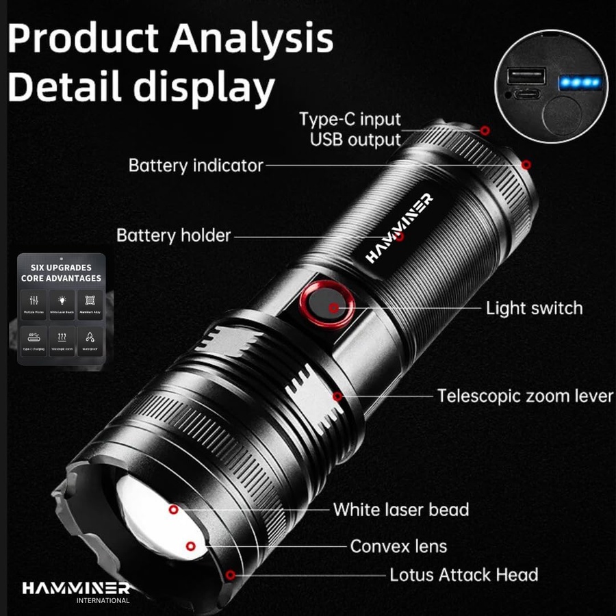 المصباح اليدوي عالي السطوع مجهز بشريحة XH-P50 مطورة