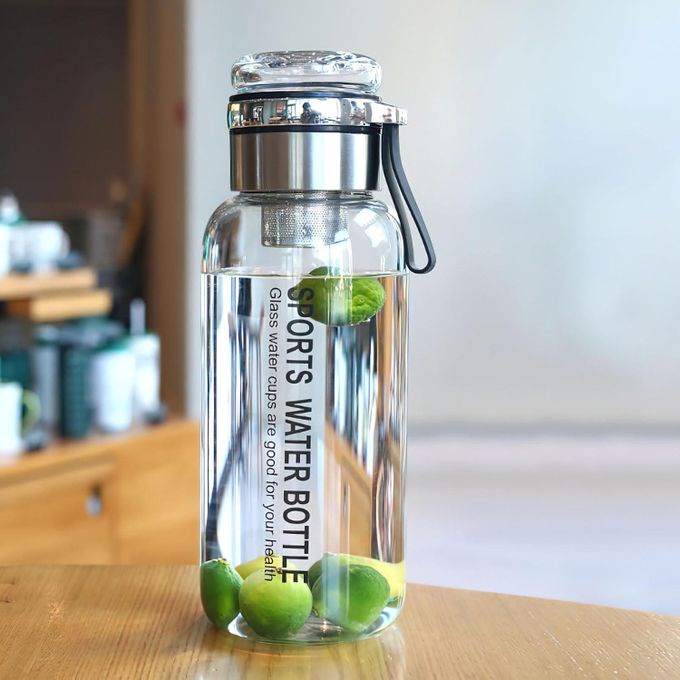 liter glass water bottle with stainless steel infuser and glass lid that doubles as a water and beverage cup (750ml)