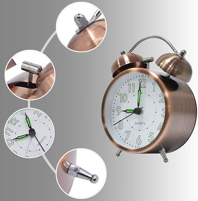 RETRO ALARM CLOCK -- Coated with antique copper, the old fashioned alarm clock boasts its vintage style with double bells, classic and lovely. In addition to being an alarm clock loud enough, it is also a perfect decoration for bedroom, desk, home and office, etc.