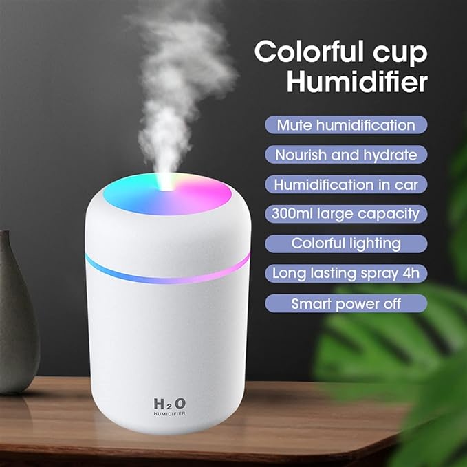 for Bedroom Air Humidifier Noise Perfume Mist Maker Portable Diffuser with Night Lignt for Home Office Nebulizer (Color : White)