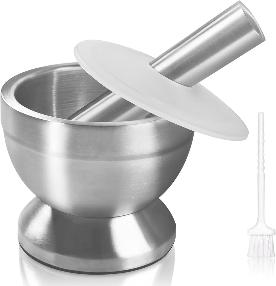 آمنة غذائيًا: مجموعة المدقة والهاون الخاصة بنا مصنوعة من الستانلس ستيل الآمن غذائيًا 304، مقاومة للصدأ ومضادة للتآكل، ولا تترك أي طعم معدني للطعام. سهلة التنظيف. المقاس: وعاء الهاون حوالي 3.9 × 3.3 انش. هاون صغير الحجم، بحجم راحة اليد العادية تقريبًا - بينما يمكن للمرء أن يلتقطه بيد واحدة، بسعة 250 مل. طحن بسهولة: مدقة من الستيل الصلب شديد التحمل مع سطح تلامس أكبر، مما يجعل الهرس أسهل. تجنب الفوضى: يسمح لك الهاون والمدقة بغطاء بإبقاء الطعام في وعاء الهاون وليس فوق سطح الطاولة. مع قاعدة مضادة للانزلاق، بغض النظر عن الطحن أو الضرب أو السحق أو أي شيء قوي، فإنها تقف دائمًا هناك بأمان. استخدامات متعددة: مجموعة المدقة والهاون الصغيرة هذه مناسبة تمامًا لمسحوق الأعشاب والحبوب والأرز والتوابل والثوم والزنجبيل والفلفل الحار والفلفل والحبوب والقهوة والمكسرات والجذور والشاي والخبز والمقرمشات والبسكويت والمساحيق الدقيقة والكيمياء والاستخدام المختبري أو حتى لسحق الأدوية للحيوانات الأليفة والبشر على حد سواء. (3.9 انش)آمنة غذائيًا: مجموعة المدقة والهاون الخاصة بنا مصنوعة من الستانلس ستيل الآمن غذائيًا 304، مقاومة للصدأ ومضادة للتآكل، ولا تترك أي طعم معدني للطعام. سهلة التنظيف. المقاس: وعاء الهاون حوالي 3.9 × 3.3 انش. هاون صغير الحجم، بحجم راحة اليد العادية تقريبًا - بينما يمكن للمرء أن يلتقطه بيد واحدة، بسعة 250 مل. طحن بسهولة: مدقة من الستيل الصلب شديد التحمل مع سطح تلامس أكبر، مما يجعل الهرس أسهل. تجنب الفوضى: يسمح لك الهاون والمدقة بغطاء بإبقاء الطعام في وعاء الهاون وليس فوق سطح الطاولة. مع قاعدة مضادة للانزلاق، بغض النظر عن الطحن أو الضرب أو السحق أو أي شيء قوي، فإنها تقف دائمًا هناك بأمان. استخدامات متعددة: مجموعة المدقة والهاون الصغيرة هذه مناسبة تمامًا لمسحوق الأعشاب والحبوب والأرز والتوابل والثوم والزنجبيل والفلفل الحار والفلفل والحبوب والقهوة والمكسرات والجذور والشاي والخبز والمقرمشات والبسكويت والمساحيق الدقيقة والكيمياء والاستخدام المختبري أو حتى لسحق الأدوية للحيوانات الأليفة والبشر على حد سواء.