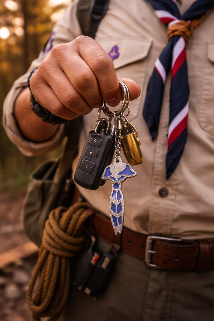 ميدالية منديل كشفي بتصميم مميز مستوحى من الهوية الكشفية، تضيف لمسة أناقة وانضباط على المظهر العام للكشاف. مصنوعة من خامات عالية الجودة مع تشطيب معدني لامع يضمن المتانة والاستخدام لفترة طويلة بدون تلف أو تغيير في الشكل.