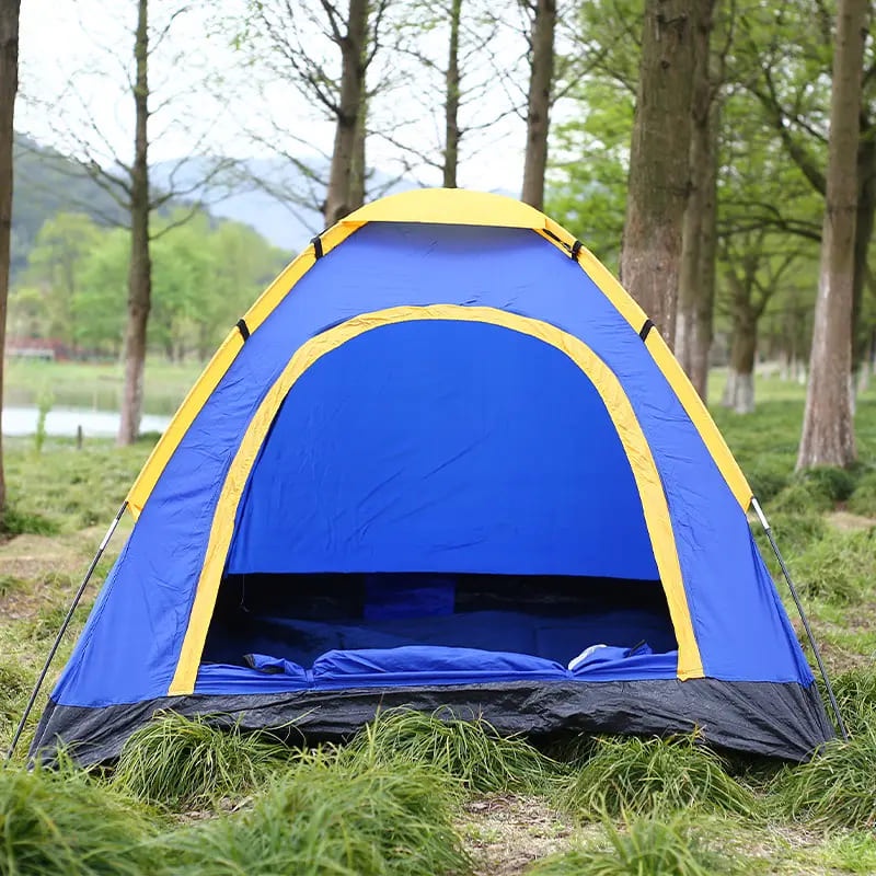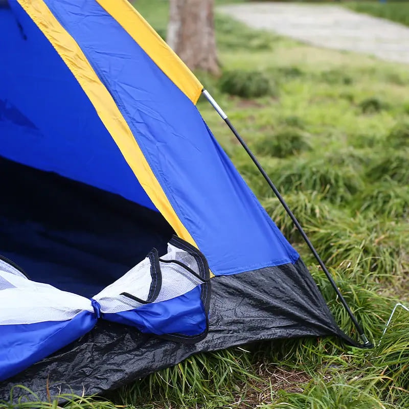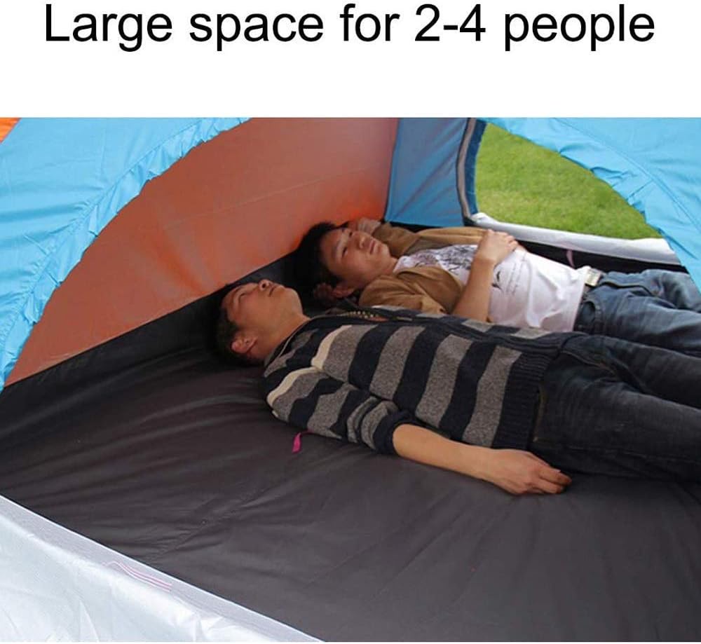 [Two Persons]: 200x150x110cm This camping tent offers comfortable and spacious indoor shelter for two adults or four children. It can also be used as a three-person tent if the smaller size is suitable. The ultra-lightweight polyester fabric and UV-resistant coating protect you from harmful rays. This tent keeps you cool in hot weather and warm on cold nights.